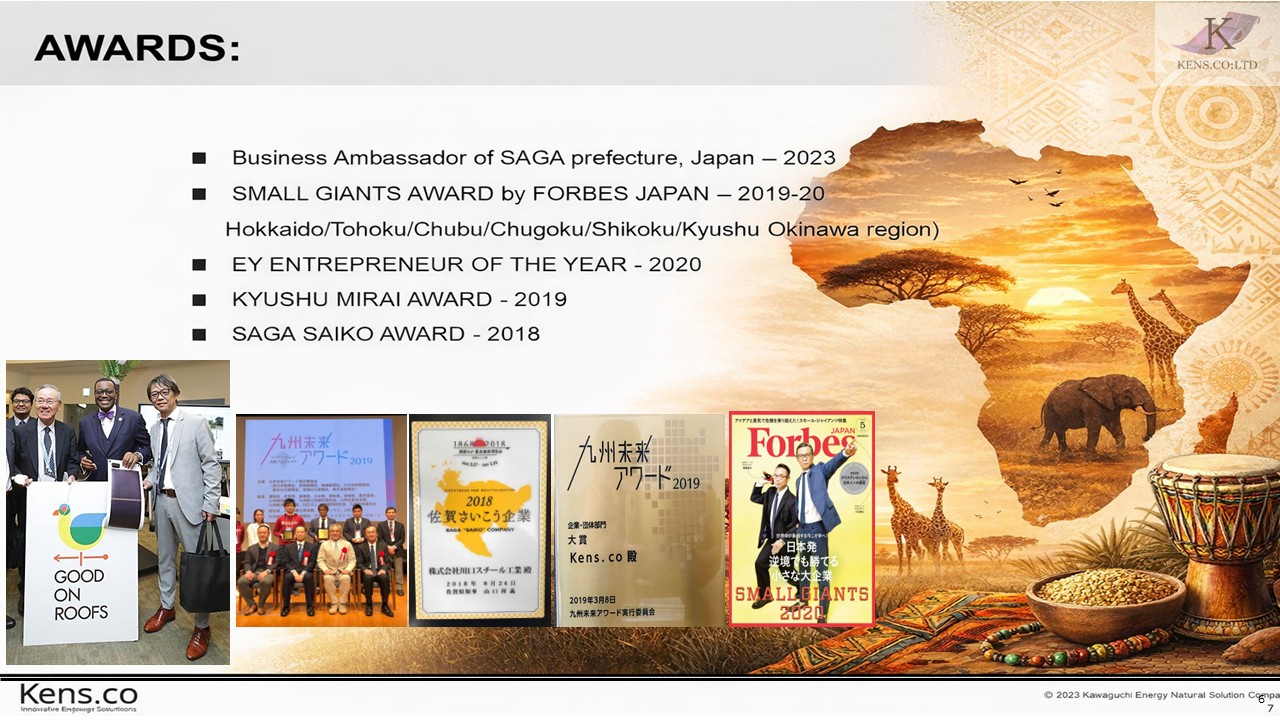 Kens.Co; Ltd has won several awards for contributing to great development in the renewable energy sectors of Africa with a dynamic business model. Also, one of the prominent contributors in Africa is from Kyushu, Japan.